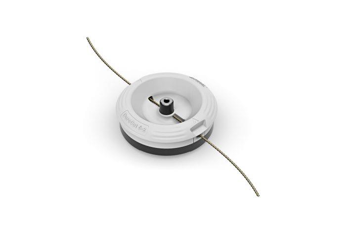 Zweifädiger Fadenmähkopf, für Flächen-und Ausputzarbeiten in zähem Gras. Einfaches Einstecken von bis zu 2 Fadenstücken. Kompatibel zu vielen verschiedenen Mähfadengrößen und -formen.